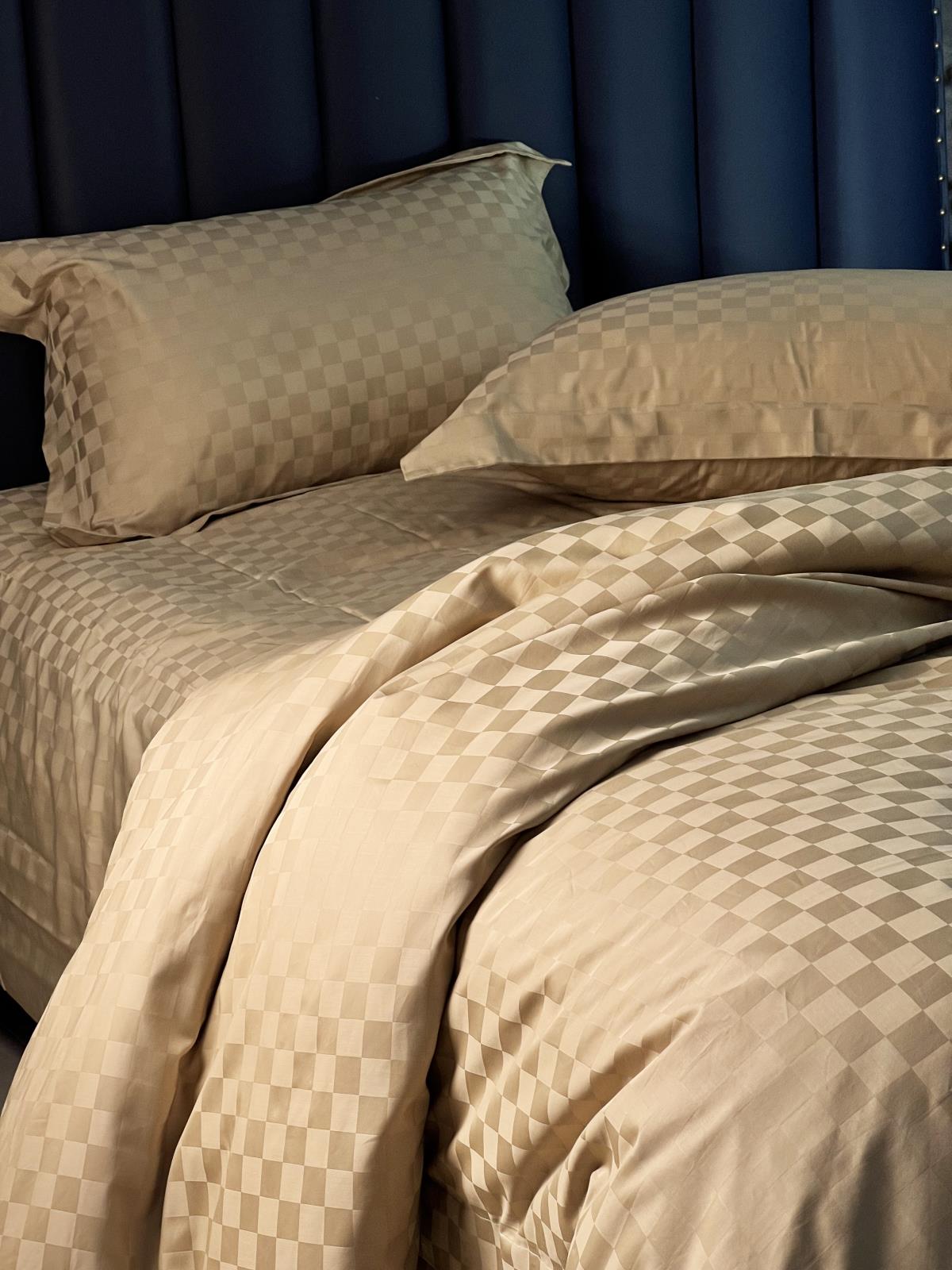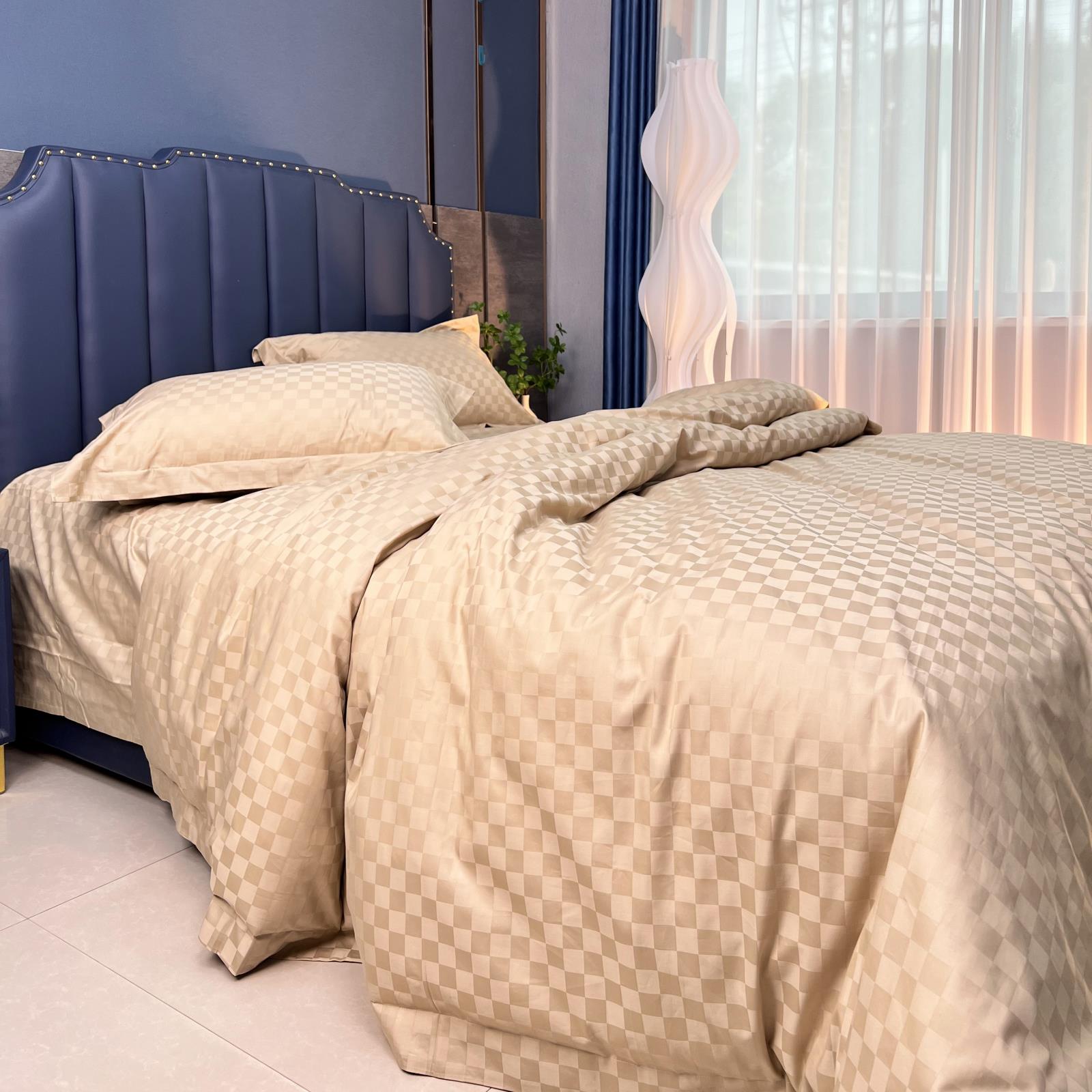 •  全棉提花卡其色四件套
